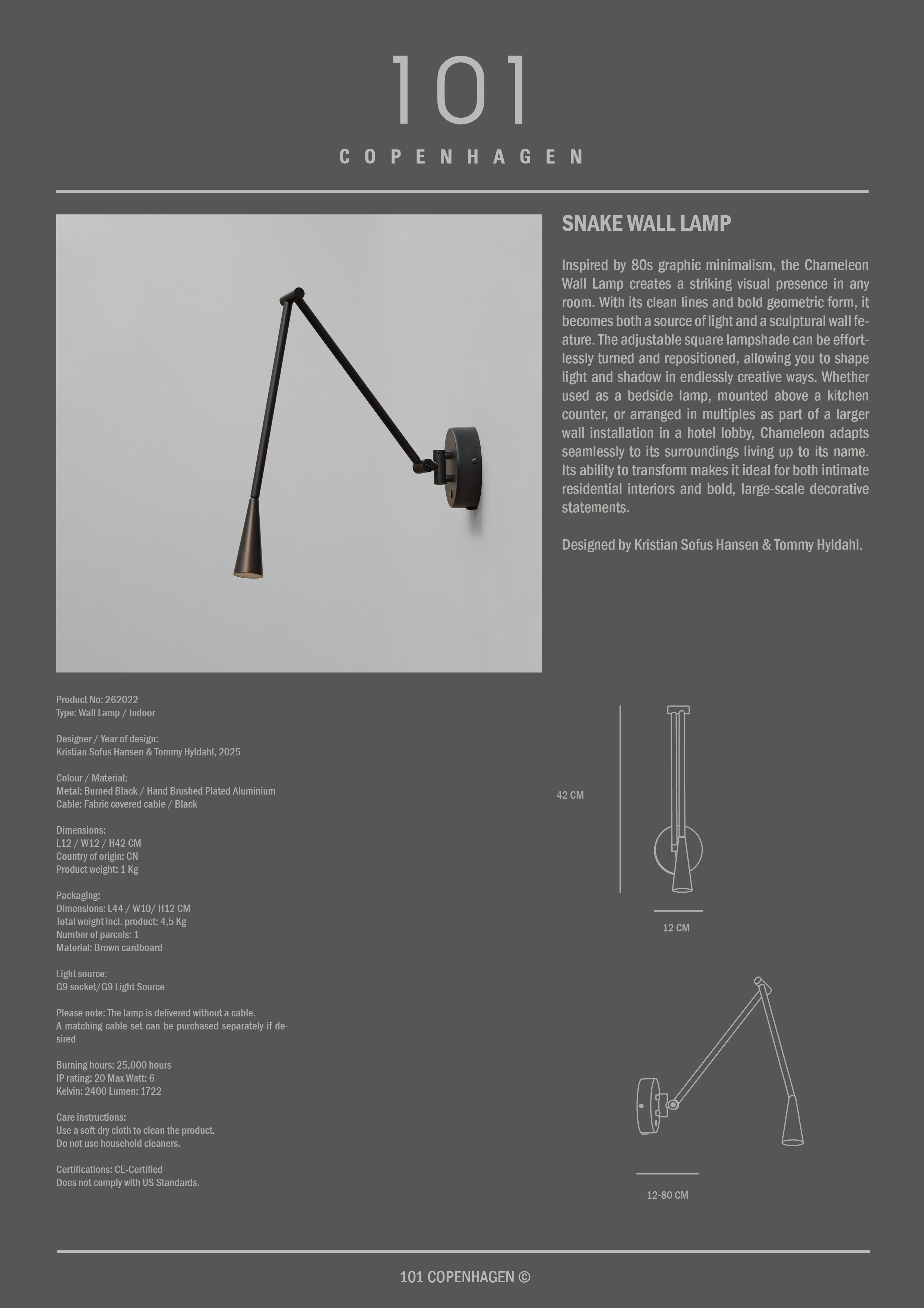 101 Copenhagen Snake Væglampe Brændt Sort