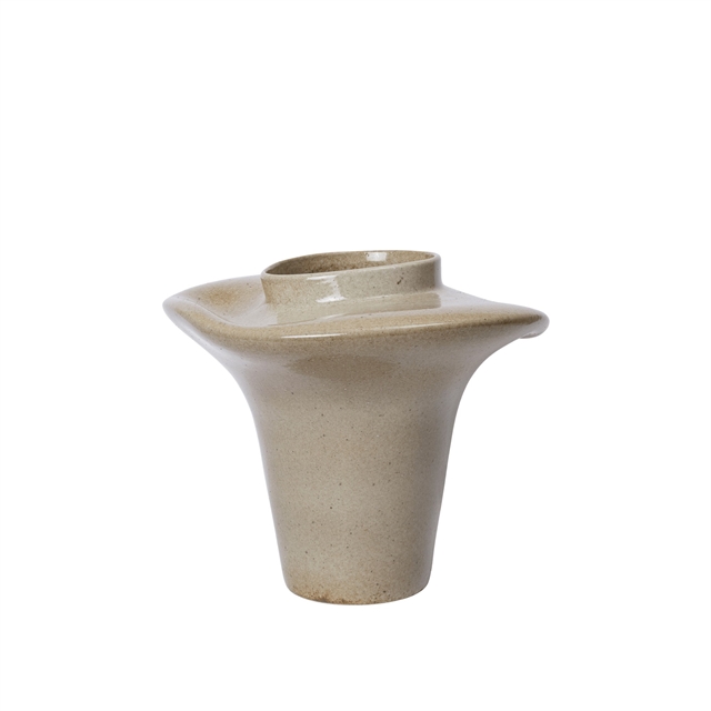 Organiske linjer og bevægelse definerer Evio Vasen, der har en bred, bølgende kant inspireret af vand formet af vindens kraft. Hver vase fremstilles individuelt, hvilket giver subtile variationer i form og overflade. Det vandtætte indre sikrer funktionalitet, mens vasen tilfører rummet et kunstnerisk og levende udtryk.
