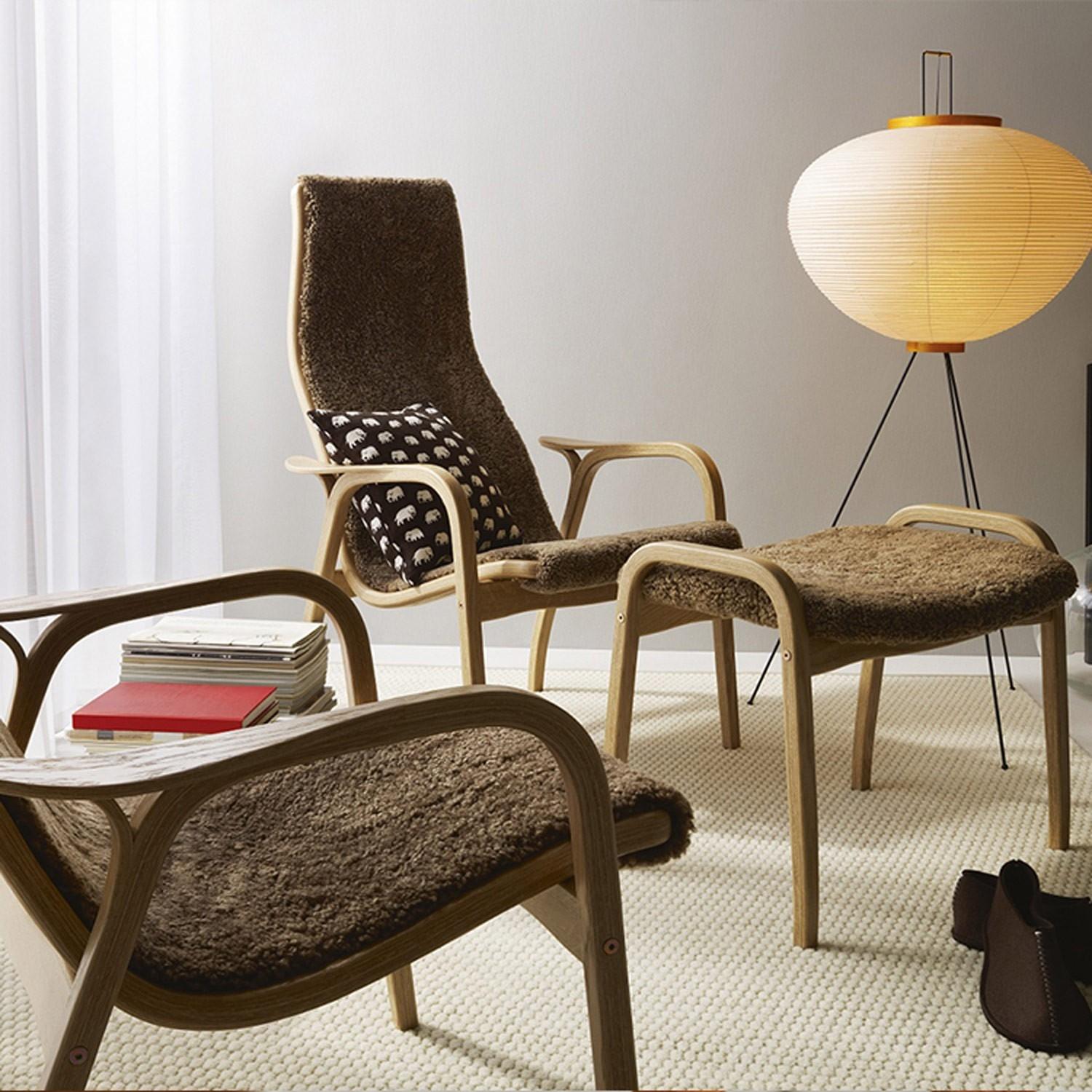 Swedese Lamino Lænestol Med Fodskammel Høj Lakeret Bøg Eg/Sahara/Fåreskind