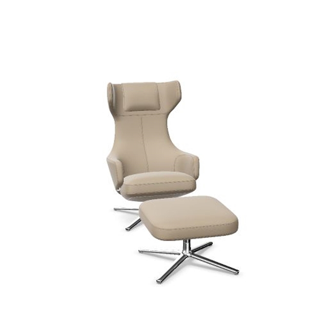Vitra Grand Repos Lænestol Med Ottoman Mørk Sand/Krom